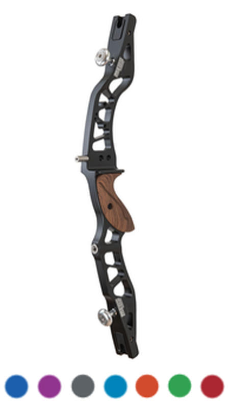 Kinetic Meos 21" Recurve RiserThe Kinetic Meos Riser weighs only 900g ideal for juniors and archers with short draw length. The riser is made of aluminium in anodised and dipped finishes. Only available in 21", the riser is compatible with all types of ILF limbs (International Limb Fit). It includes an adjustable tiller and a limb alignment system.