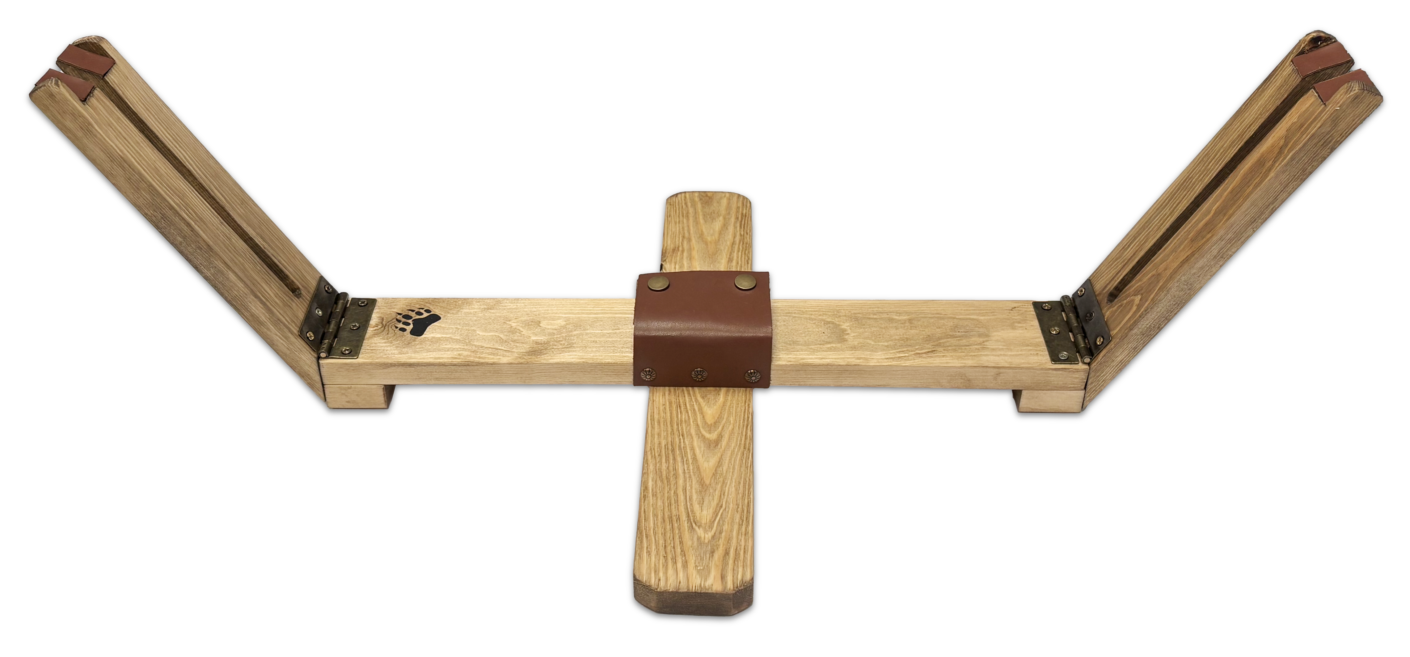 Archers Paradox Flatbow StandArchers Paradox Flatbow Stand is a beautifully crafted wooden stand designed specifically for traditional flatbow archers. Handmade in-house by Clickers Archery, this stand combines simplicity, durability, and classic aesthetics, making it an ideal companion for archers who value both function and craftsmanship. Constructed from quality wood and finished with a protective oil treatment, the stand offers excellent water resistance, allowing it to be used confidently both indoors and outdoors in a variety of conditions. Its sturdy yet minimalist design provides reliable bow support while maintaining a traditional look that complements classic archery equipment. For added convenience, a leather strap is included to keep the stand neatly secured when not in use, making it easy to transport and store. Key Features