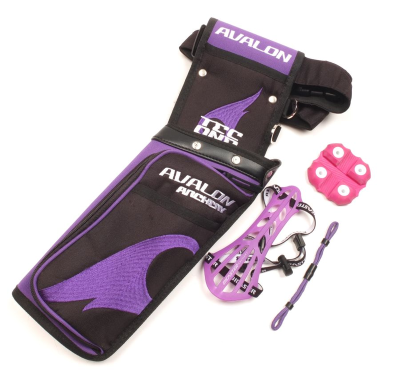 Second Hand Avalon Tec One Field Quiver Set - LH - PurpleAvalon Tec One Field Quiver - LH - Purple - Can be used for RH for junior archers Archers Paradox Recurve Finger Sling - Purple Flex Pull Arrow Puller - Pink Bicaster Pastic Bracer - Purple More Product Info