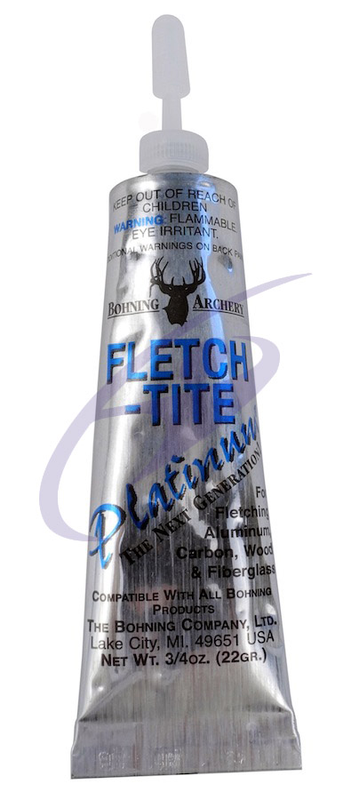 Bohning Fletch-Tite Platinum Adhesive GlueBohning Fletch-Tite Platinum Adhesive is a clear-drying glue which has been specifically formulated to be used as a fletching glue. Slightly slower drying than the newer flexible cyanoacrylate fletching products, but is time-tested, durable and easy to apply. Fletch-Tite is designed to work on vanes & feathers for fletching on aluminium, carbon, fibreglass & wooden shafts. Bohning recommends when using Fletch-Tite leave the fletching in the clamp for 5 minutes - the full cure time is 48 hours. The batch we stock is the latest formulation from Bohning, which bonds well even on the newer smooth ally shafts. The net weight is 3/4oz or 22gr. More Product Info