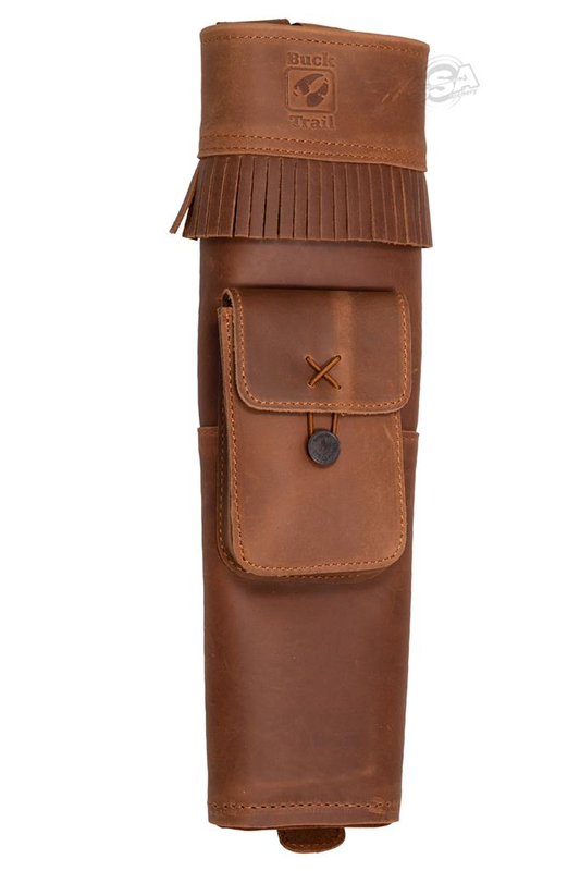 Buck Trail Wnota Traditional Back QuiverThe Buck Trail Wnota Traditional Back Quiver is a perfect blend of classic style and functionality for traditional archers. Crafted from high-quality brown leather, this back quiver not only offers a timeless look but also ensures durability for years of use. With its 47cm length, it provides ample space for your arrows while maintaining a compact and comfortable fit for extended shoots. Key Features: