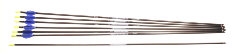 Second Hand Easton ACE 1206 Arrows - 570 - 29 1/2" - Set of 7Easton ACE 1260 Arrows 6 Complete arrows and 1 bare shaft 570 29 1/2" Pin Nocks -Yellow Blue Jet 6" Vanes More Product Info