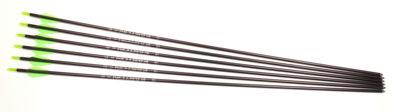 Second Hand Easton Jazz Arrows - 1616 - 28" - Set of 6Easton Jazz Arrows - Set of 6 1616 28" EP16 Vanes - Green x 2 Black x 1 Large Goove G Nock - Green More Product Info