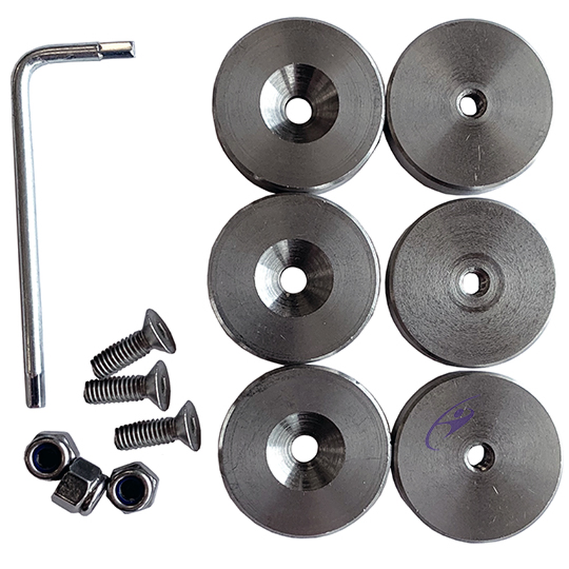 Gillo Stainless Steel Weight Kit - G01-DK6The G01-DK6 stainless steel weight kit from Gillo Archery is designed to fit into the G1, G2 and GQ risers. The kit includes 6 weights, three of them have an m4 threaded hole, and the other three are unthreaded. By allowing you to add weight to either side it means there are over 50 balancing options available to try. The kit also includes six m4 screws and self-locking nuts, if you are just using one weight then you use the screw and nut to hold the non-threaded weight in place. If you use weights on both sides then you don’t need to use the nut, you put the screw through the non-threaded weight and through the riser and then screw the threaded weight onto the other side. The disks with the m4 Threaded holes are approximately 24g each and the non-threaded ones are approx 23g each. More Product Info