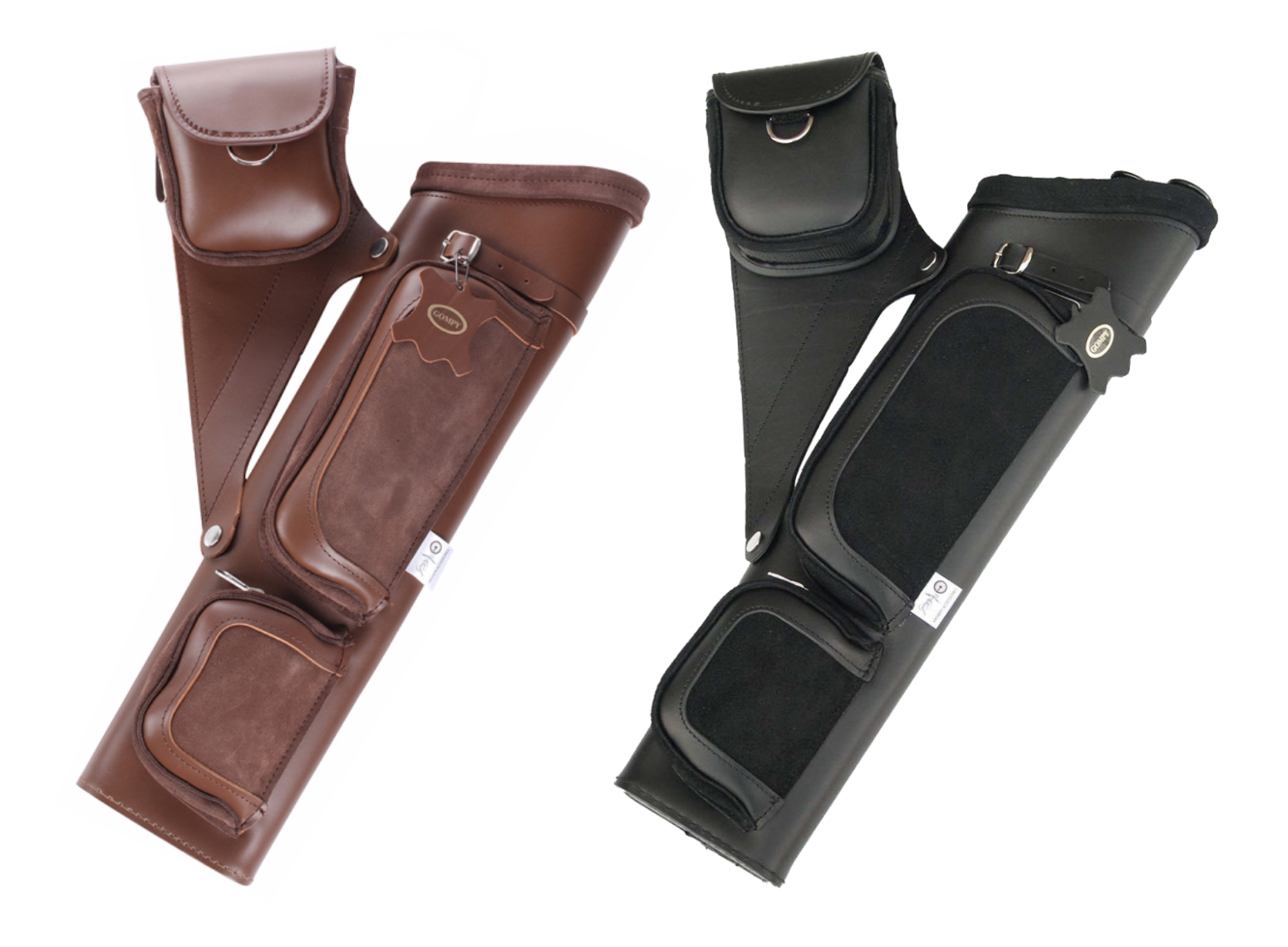 Gompy QuiverGompy Quiver - PT18 & PT17 combines traditional craftsmanship with functional design, offering archers a reliable leather quiver built for everyday shooting. Made with high-quality materials and thoughtful storage features, these quivers provide a classic look while delivering modern practicality in the field or on the range. Both models include multiple arrow compartments for organised storage, along with ample accessory pockets, a pen holder, and convenient clips for attaching tabs, binoculars, or other essentials. Each quiver comes complete with a comfortable belt for easy, secure attachment and all-day usability. Choose between two lengths to suit your preference and shooting style: