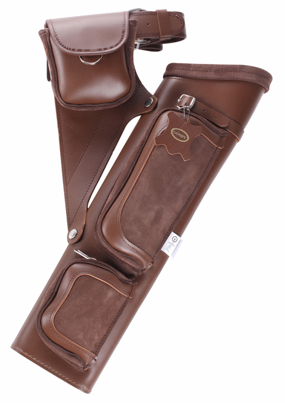 Gompy QuiverGompy Quiver - PT18 & PT17 combines traditional craftsmanship with functional design, offering archers a reliable leather quiver built for everyday shooting. Made with high-quality materials and thoughtful storage features, these quivers provide a classic look while delivering modern practicality in the field or on the range. Both models include multiple arrow compartments for organised storage, along with ample accessory pockets, a pen holder, and convenient clips for attaching tabs, binoculars, or other essentials. Each quiver comes complete with a comfortable belt for easy, secure attachment and all-day usability. Choose between two lengths to suit your preference and shooting style:
