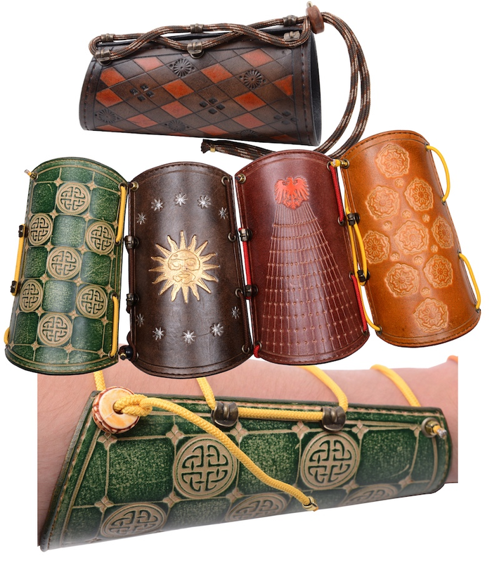 Hoste Traditional BracerHoste makes each of our leather Traditional bracers by hand and has a variety of different patterns and colours, so every bracer is unique. The bracer is available in both an open and closed style, the closed style wraps all the way around the arm whereas the open style just covers the forearm.