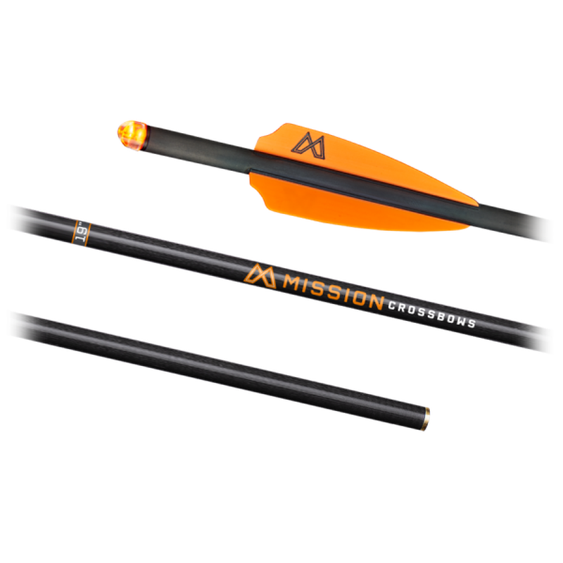 Mission Bolt Lighted - Pack of 3Mission® Crossbows partnered with Clean-Shot™ to design the ultimate lighted nock. These lighted nocks allow you to track the flight of your bolt in low-light conditions. They come in a package with 3 bolts already assembled with nocks. These bolts are engineered and safe for our Sub-1 series crossbows. 19": .001″ straightness tolerance for superior accuracy. 22": .003″ straightness tolerance. More Product Info