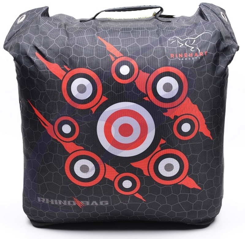 Rinehart Rhino BagThe Rinehart Rhino Bag has an outer shell made from weather and UV resistant polypropylene fabric with double-sided target graphics. It also features a Dual Layer Power Core for long-lasting stopping power while still allowing easy arrow pulling even when shooting a compound bow or high-speed crossbow. The bag features a Yellow design on one side and a red design on the other, available in two sizes, 26" and 18"