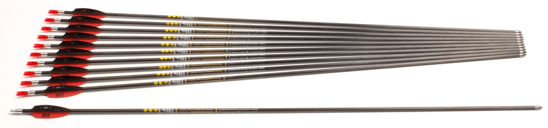 Second Hand Skylon Preminens - Set of 11 - 500 SpineThese arrows are in very condition, with one nock missing. The arrow shafts are cut to 27". 10 of the arrows have Red Easton G pin nocks. All 11 arrows are fletched with 1x Black and 2x Red Bohning Air Vanes.