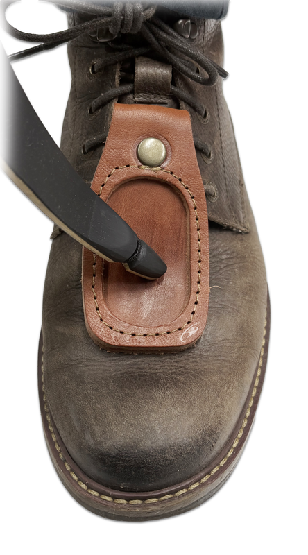 Strele Shoe Bow SupportWhen shooting Field or 3D, long waits at the peg are part of the game, and keeping your bow safe, clean, and comfortable during those pauses is essential. The Strele Shoe Bow Support provides a convenient, sturdy rest for your lower limb tip, preventing it from digging into your boot or touching muddy ground. Designed to attach easily with a press-stud closure around any laced shoe, this universal support works perfectly with longbows and recurves. Crafted from thick, durable cow leather, it offers excellent longevity and a secure hold. Natural leather variations mean each piece has its own character, adding to its traditional charm. Key Features