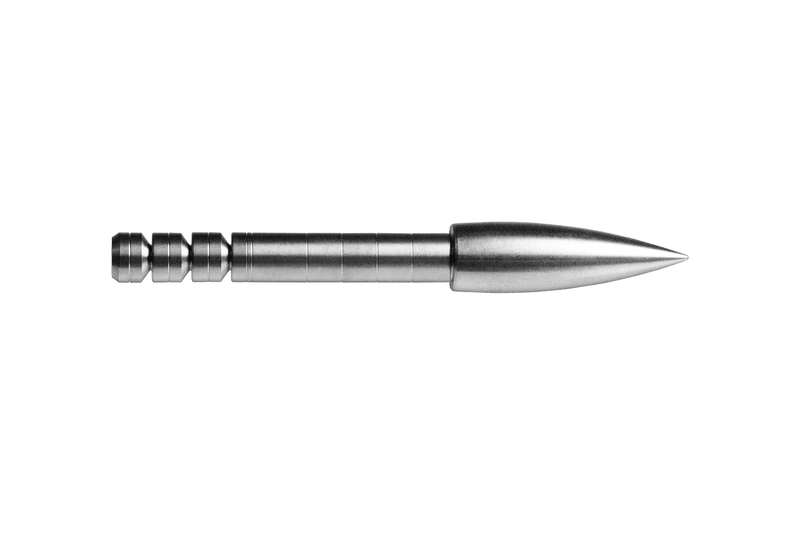 TopHat SLX Convex Break-off Point - SingleThe Top Hat SLX Convex Point is a glue-in break-off point, machined from stainless steel to a special profile. It fits a large selection of shafts with an inside diameter of.204". It is designed for target competition with an elongated bullet-shaped point. The sharp tip ensures straight entry into the target and prevents glance-outs in crowded targets. Features: