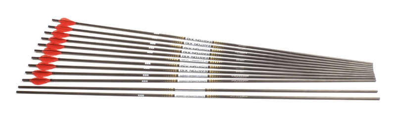 Second Hand Easton X10 Shafts - 450 Spine C1 x12Set of 12, X10 Shafts only - no fittings 450 Spine / C1 Actual carbon shaft length 28" 10 are fletched with Jet 6 Vanes 2 are Bareshaft In good condition. More Product Info